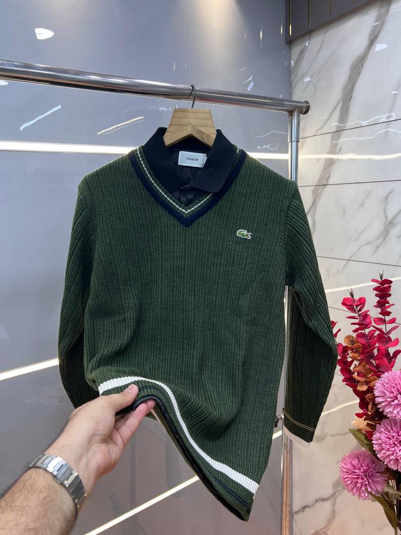 Lacost e Mehdi Premium Imported V Neck Knitted Pullover with Embroidered Logo 3502