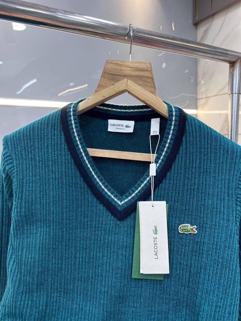 Lacost e Rama Green Premium Imported V Neck Knitted Pullover with Embroidered Logo 3501