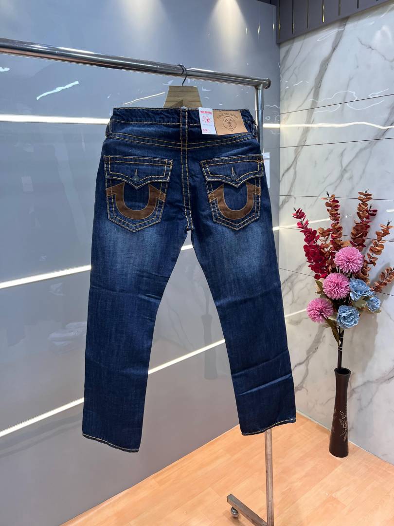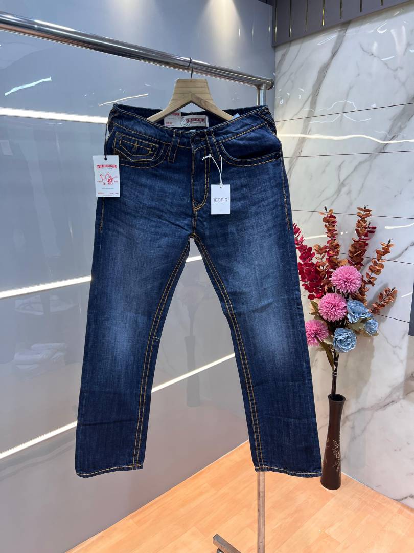 True Religio n Blue Shade Premium Imported Stretchable Lycra Fabric Straight Fit Denim with Embroidered Work 3123
