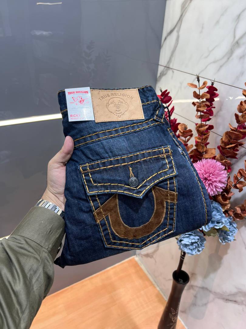 True Religio n Blue Shade Premium Imported Stretchable Lycra Fabric Boot Cut Denim with Embroidered Design 3144