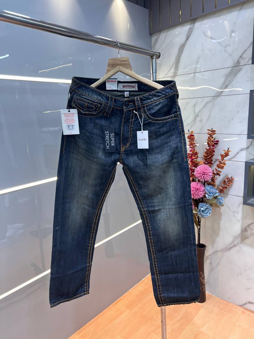 True Religio n Blue Shade Premium Imported Stretchable Lycra Fabric Straight Fit Denim with Embroidered Work 3123