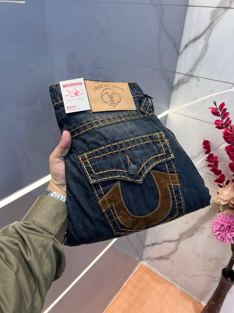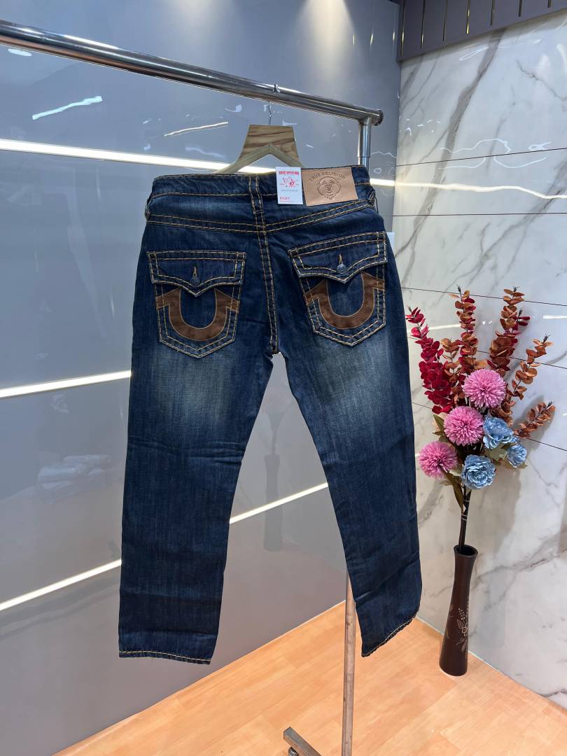 True Religio n Blue Shade Premium Imported Stretchable Lycra Fabric Boot Cut Denim with Embroidered Design 3144